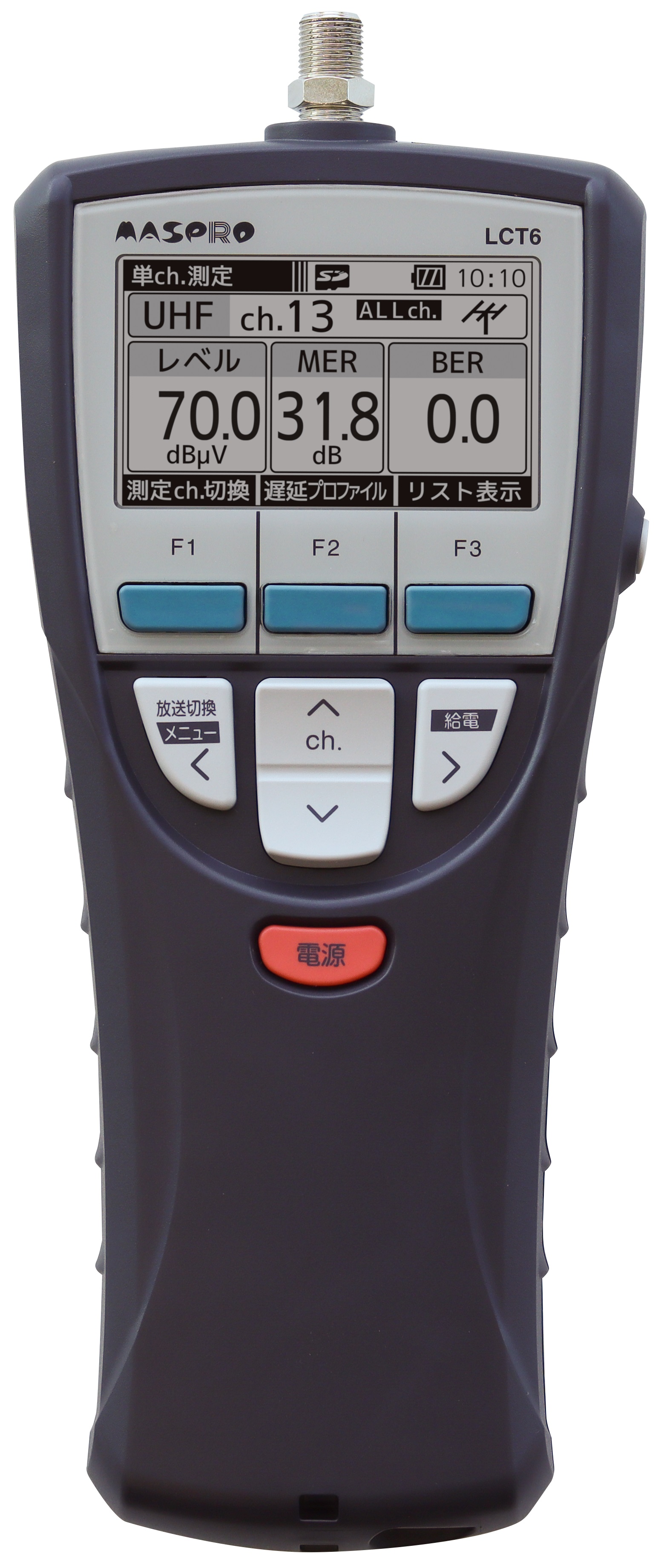 4K8K衛星放送に対応したレベルチェッカー。レベル・MER・BERの3値同時測定機能や、多チャンネル測定機能、受信確認マーク表示機能など、使いやすいハンディータイプです。充電機能付き。