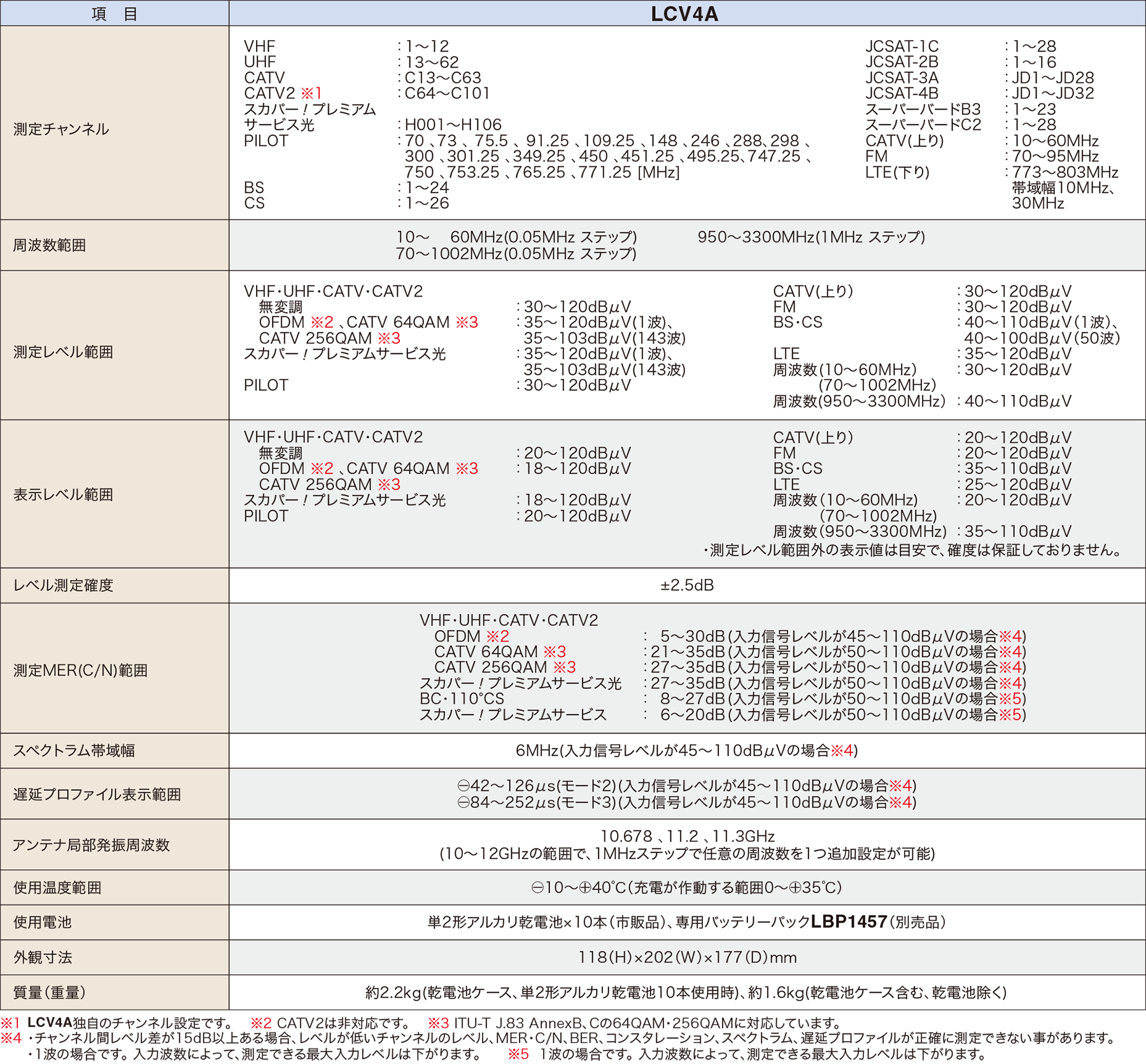 | 周波数(10から1002MHz※3、950から3300MHz) | |||||||||||