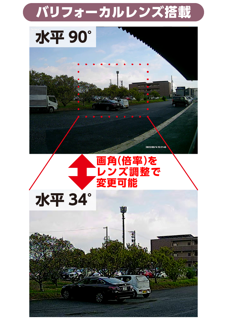 バリフォーカルレンズで焦点距離の変更(ズーム)が可能。