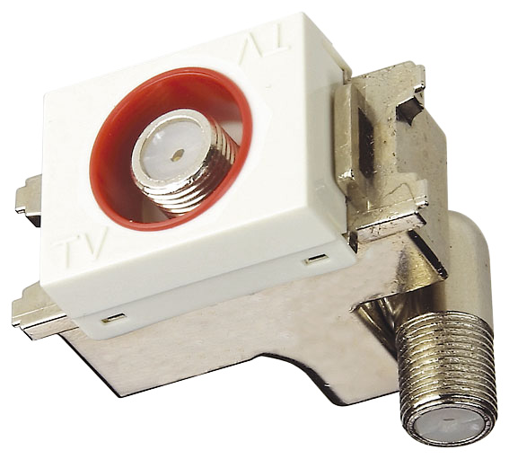 壁面に設置するテレビ端子数が1つの直列ユニット(コンセントプレート1個用)。スイッチボックス側にくる端子が可動するため、施工性に優れています。配線システムの端末用に使い、テレビ端子から電流通過させることができます。