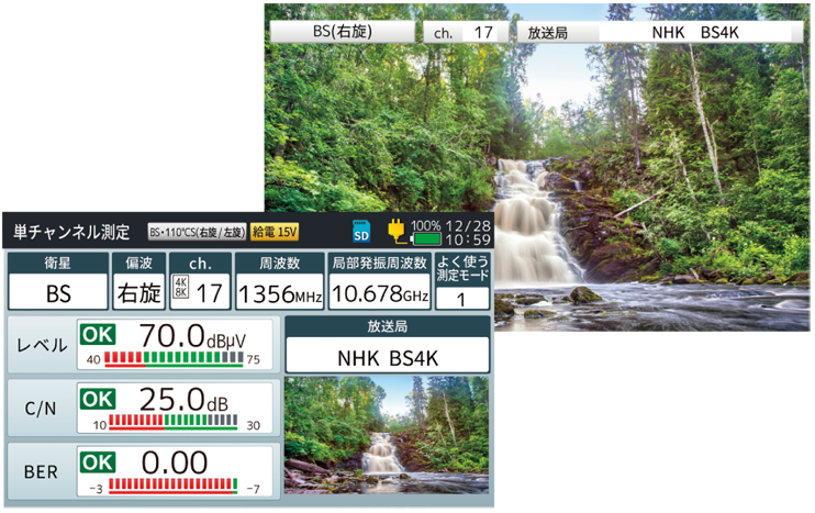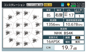 4K8K衛星放送の受信レベル、C/N、BER、コンスタレーション測定ができます。
