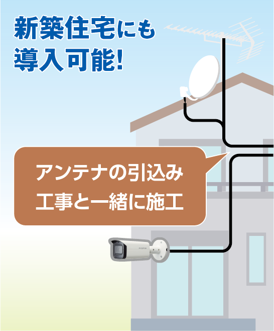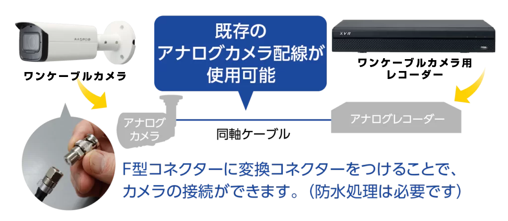 アナログカメラで使用していた既設の同軸ケーブルが使用可能なため、より少ない工事で映像を高画質にできます。