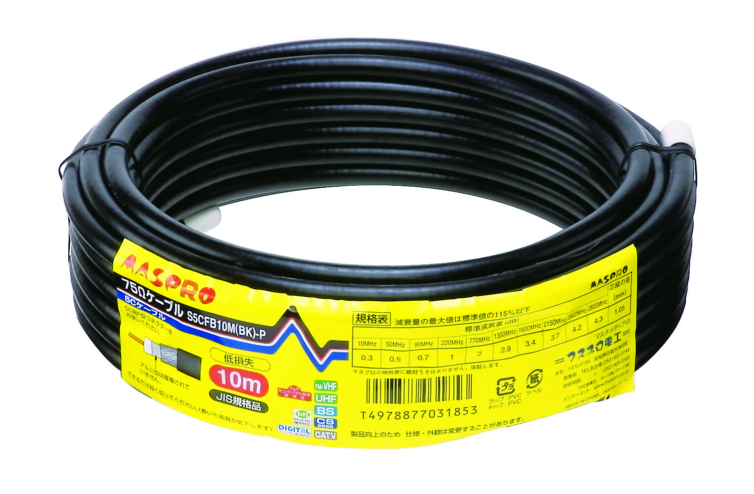 同軸ケーブル 低損失75Ωケーブル10m(5Cケーブル) S5CFB10M(BK)-P