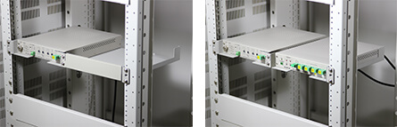 - ラック用収納トレイ(RST2U)を使用してラックに設置できる、ハーフラックタイプの光 増幅器。
